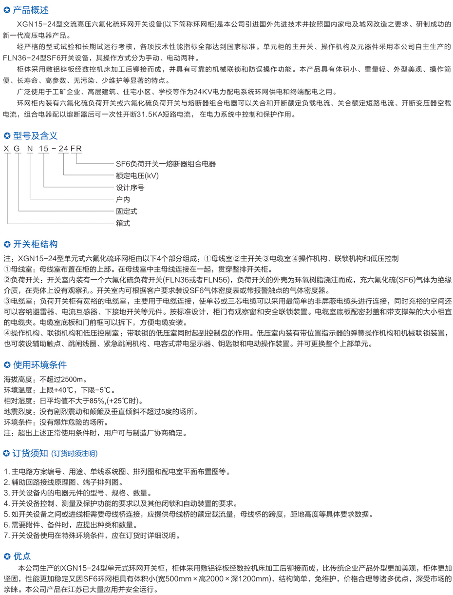 XGN15-24型交流高壓六氟化硫環網開關設備