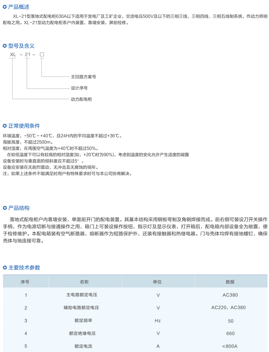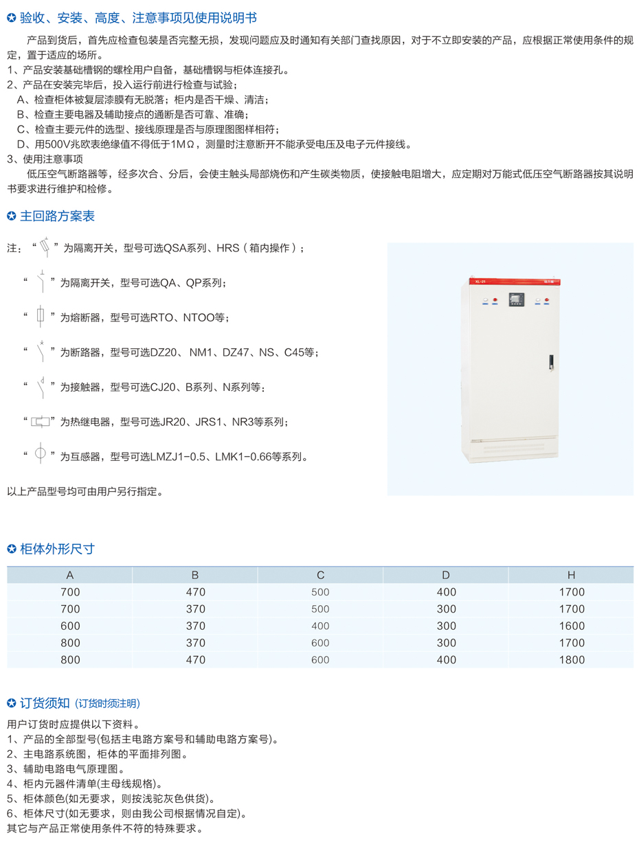 XL-21型落地式配電柜(630A以下)