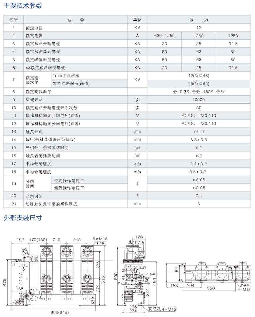 ZN63(VS1)-12側裝式戶內真空斷路器